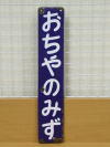 駅名板 中央線 「おちゃのみず」 小型板 59.5×12 材質 紺板ホーロー 文字 凹み 状態 サビ剥げあり 右下部分に