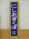 駅名板 中央緩行線 「にしおぎくぼ」 材質 ホーロー 文字 凹み 状態 C |